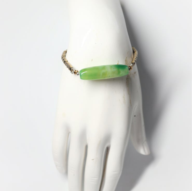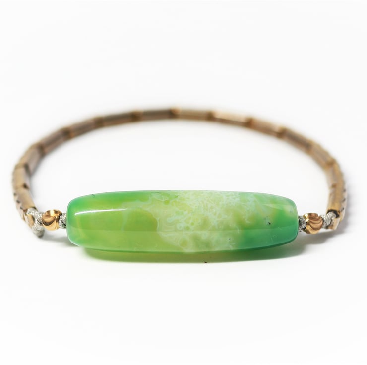 Natural Green Moss Agate Gemstone - up-cycled steampunk theme vintage ladies stretchable watch bracelet