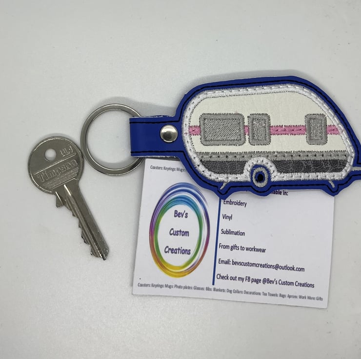 Marine vinyl makes the keyring shower proof. The design is on the front only and the back is plain.