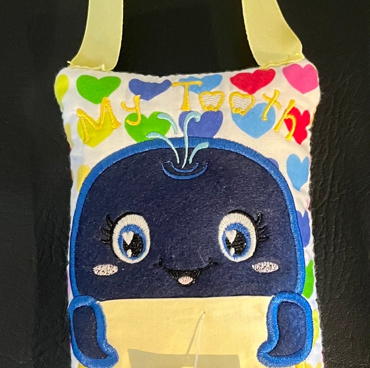 Handmade embroidered Tooth fairy pillow, no more searching for your little ones tooth under there pillow, just hang this little cushion on the door and place the tooth in the pocket.