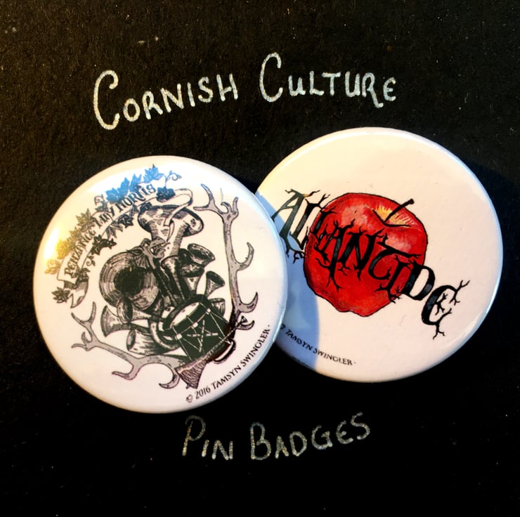 Bringing back some of the designs I created for the Cornish Culture Association, May Horns being the May tradition in Penzance of tooting horns to drive off the Devil of Winter, and where Old Ned the Raven King is resurrected by the blasting of horns at each fall he takes. Allantide is the Cornish Hallowe'en which features many traditions involving allan apples, from divination to preventing wax landing on participants faces as they try to bite into hanging apples that are suspended from a cross with candles lit on each of the 4 arms.
