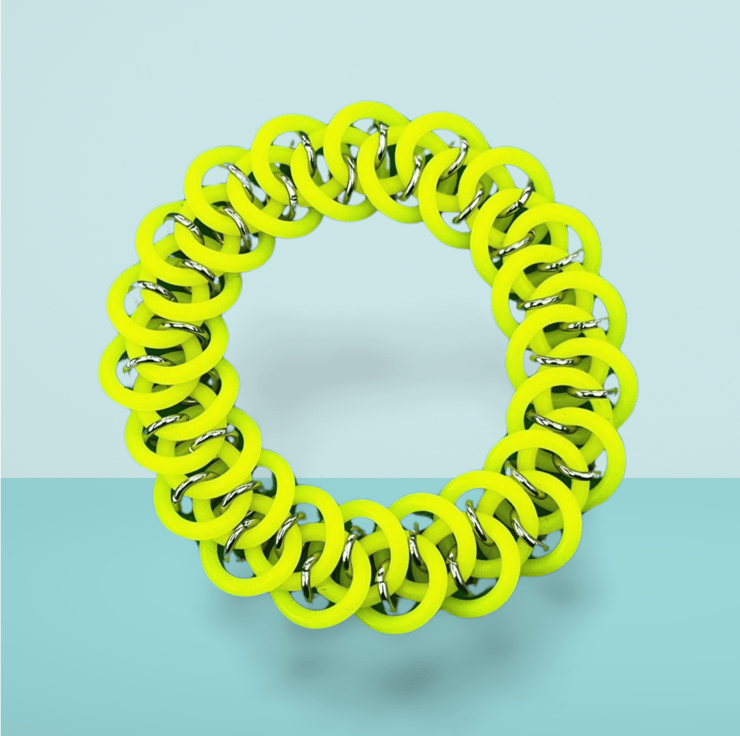While exploring chainmaille techniques, I found the Dragon Scale weave captivating due to its fluid appearance. Experimenting with mixing EDPM rubber O-rings with stainless steel jump rings, I created a stretchy, clasp-free bracelet that's adaptable to various lifestyles. The Stretchy Dragon Scale Chainmaille bracelet is available in various colours, including fluorescents, and is gender-neutral, highlighting the versatility I cherish in chainmaille.