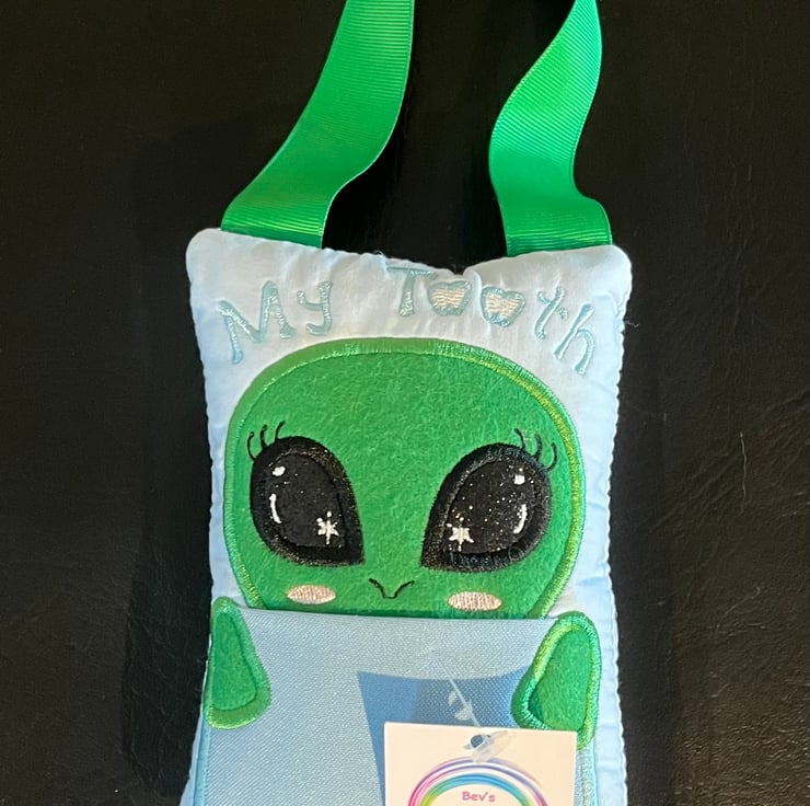 Handmade embroidered Tooth fairy pillow, no more searching for your little ones tooth under there pillow, just hang this little cushion on the door and place the tooth in the pocket.