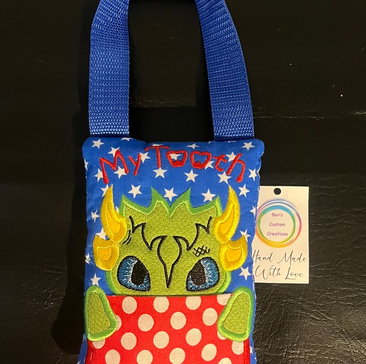 Handmade embroidered Tooth fairy pillow, no more searching for your little ones tooth under there pillow, just hang this little cushion on the door and place the tooth in the pocket.