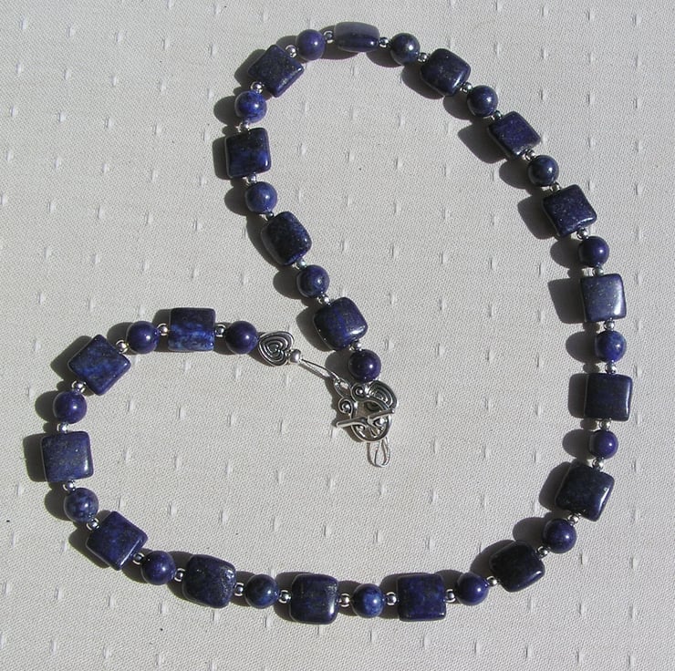 This Stunning Sumptuous Necklace is made wholly from Blue Lapis Lazuli… alternating square & round beads and for that added bit of sparkle spaced with tiny Silver spacer beads - a Gorgeous Striking combination that will look stunning either worn casually or with something more Elegant for a Special Evening out
