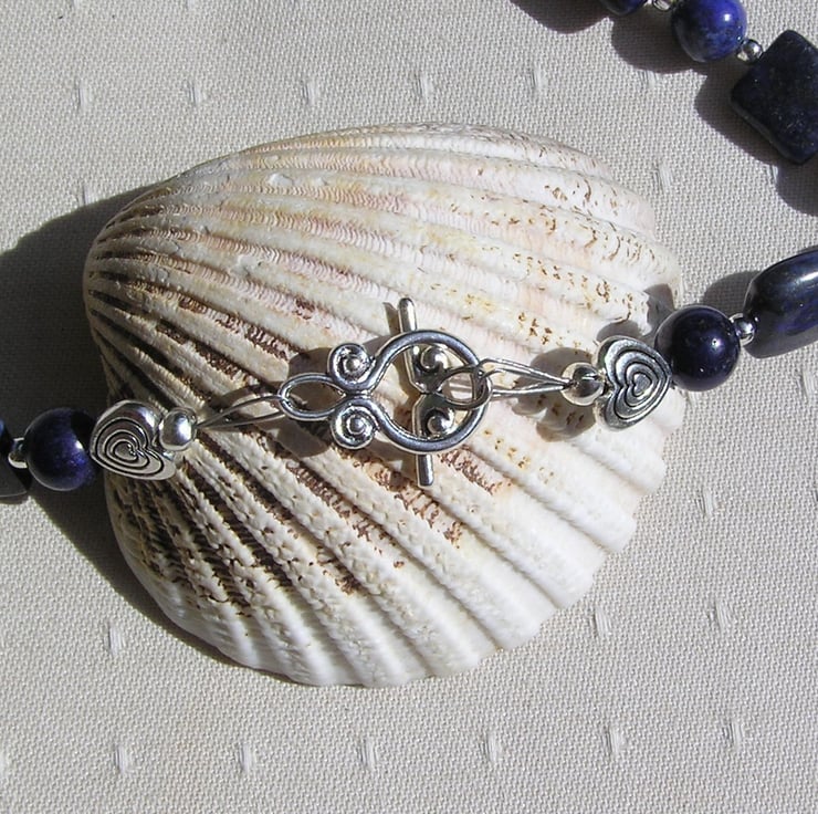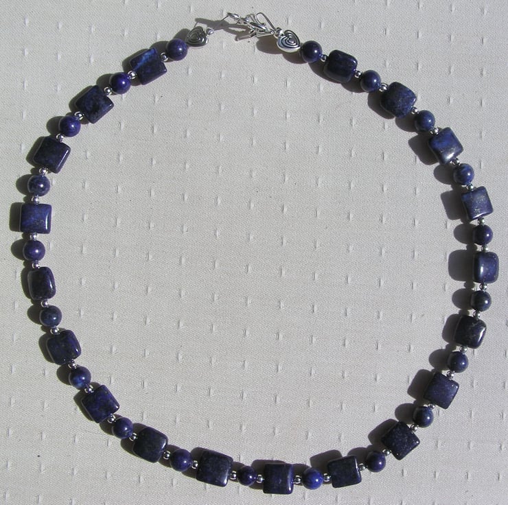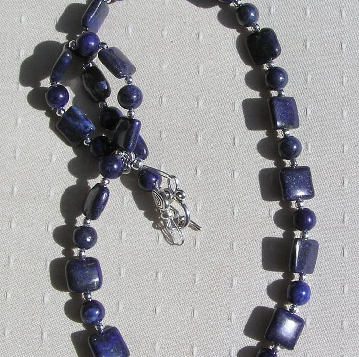 This Stunning Sumptuous Necklace is made wholly from Blue Lapis Lazuli… alternating square & round beads and for that added bit of sparkle spaced with tiny Silver spacer beads - a Gorgeous Striking combination that will look stunning either worn casually or with something more Elegant for a Special Evening out