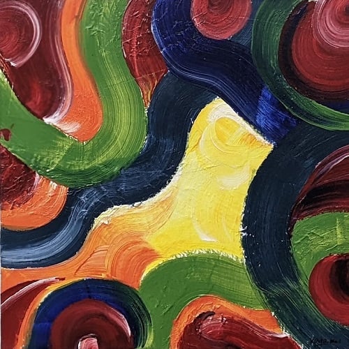 Freedom was painted around the time of the Winter Solstice. I moved while I imagined flowing rivers and looking through woodland into the sun, inky dark sky and stars are seen. There is an ending and a beginning. There is lightness and darkness. I’m proud of its luminous light. I love the movement and energy I captured. I painted this one and Adventure together (see separate listing).