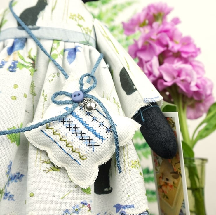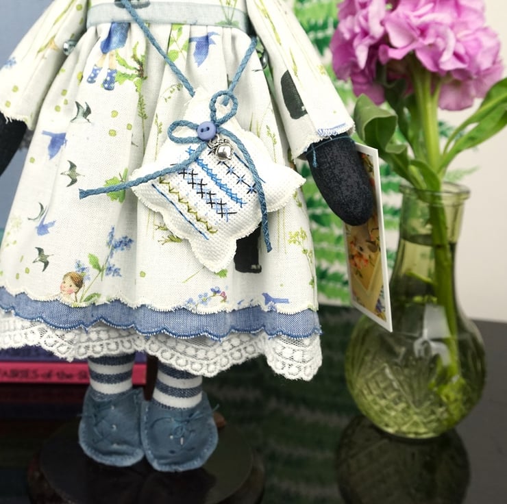 Please enjoy browsing and should you buy a doll she will be packaged in an organza bag. I have been given literally hundreds and will use them until they run out rather than let them go to landfill. Also I have been asked why I don't often repeat combinations of fabric with the dolls. It is because I tend to buy remnant stock where I can, tiny pieces of fabric that are too small for most people to use. So often I have only enough to make one doll. Thank you and my warmest wishes xx