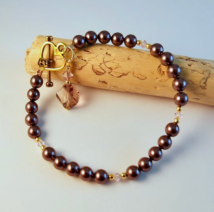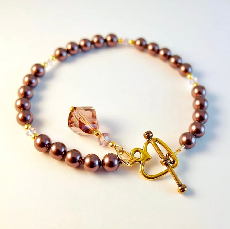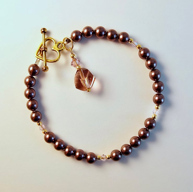 The bracelet fastens with a sweet heart toggle clasp that is nickel and lead free.