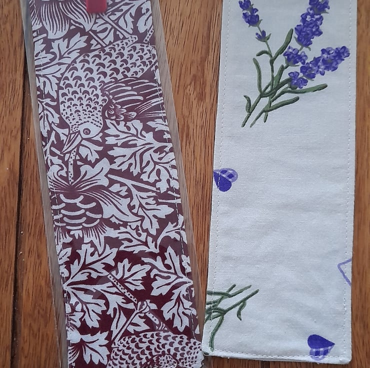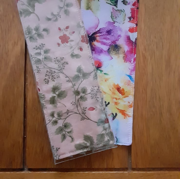 Pretty fabric bookmarks made from 100% quilting cotton. Lovely gift. 8.5 x 2.5 inches (22 x 6.5cm) ribbon loop at the top.