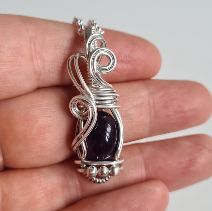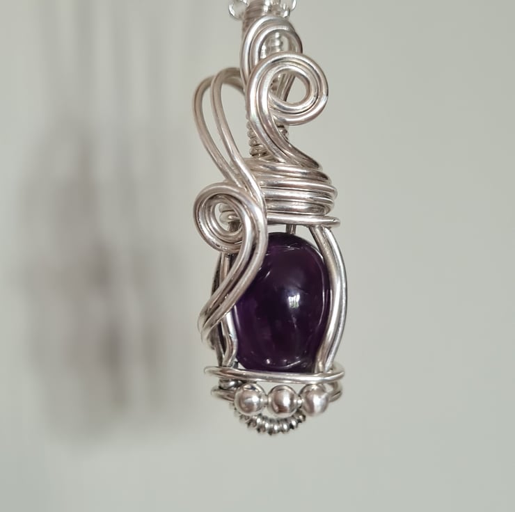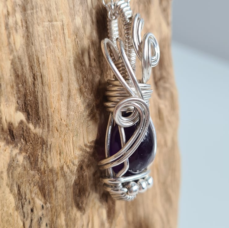I have taken this beautiful and top quality, deliciously dark purple Natural Amethyst crystal and handwrapped it in 925 Silver finishing with sterling silver beads. This is a lovely elegant necklace and would make the perfect gift for that special someone. Amethyst is also the birthstone for February so ideal for birthdays.
