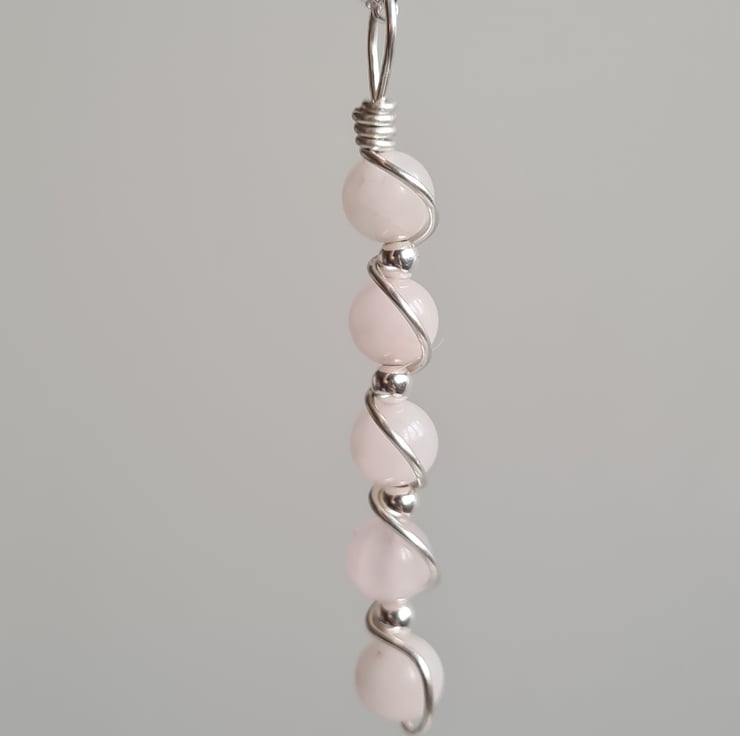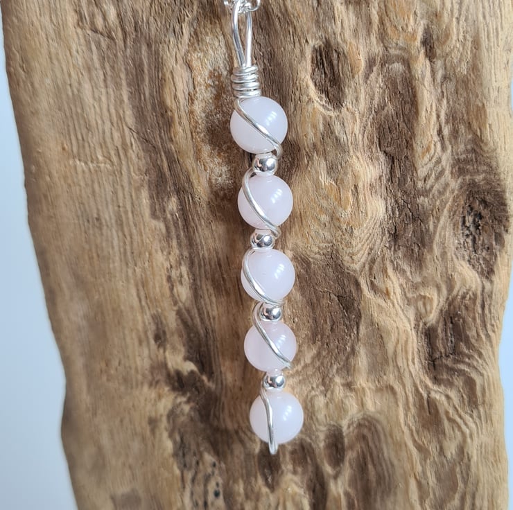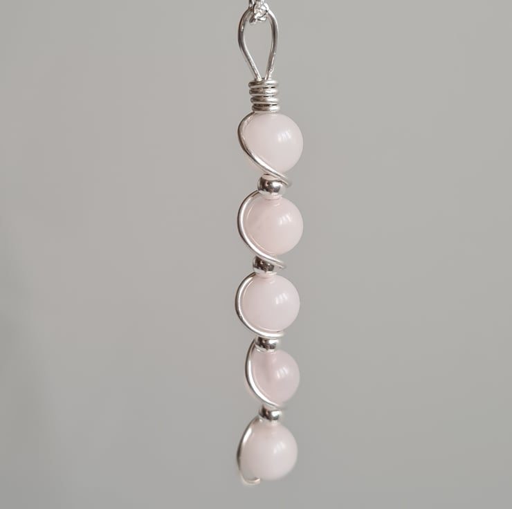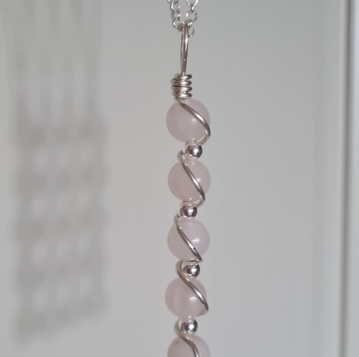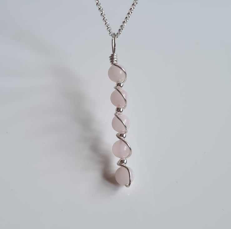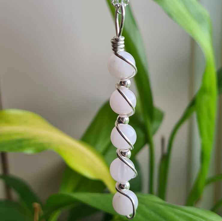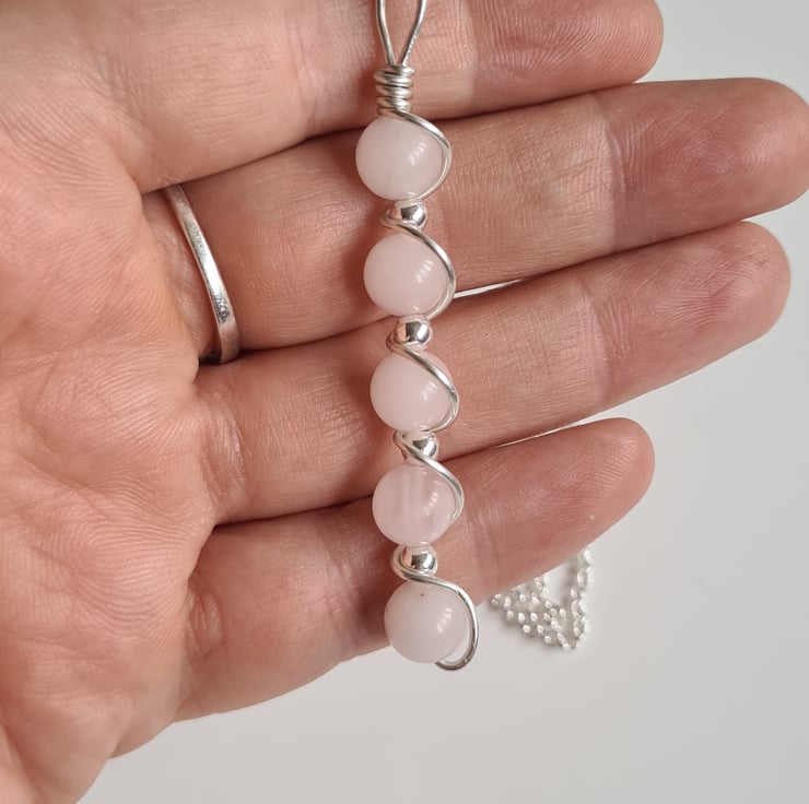 I have wrapped these calming Natural Rose Quartz & Silver beads in 925 Silver into this elegant design, and the pendant comes on an 18" 925 Silver chain and gift boxed.