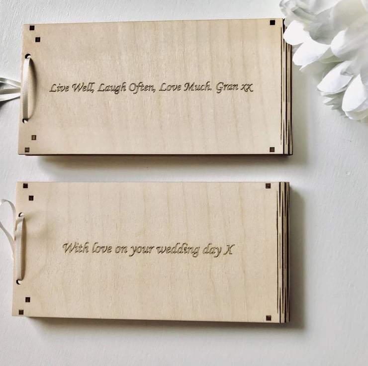 These custom wooden envelopes allow you to present cash gifts with style and sentiment.
