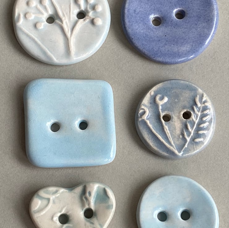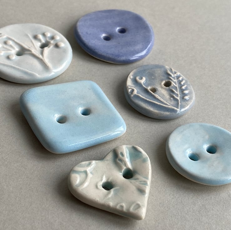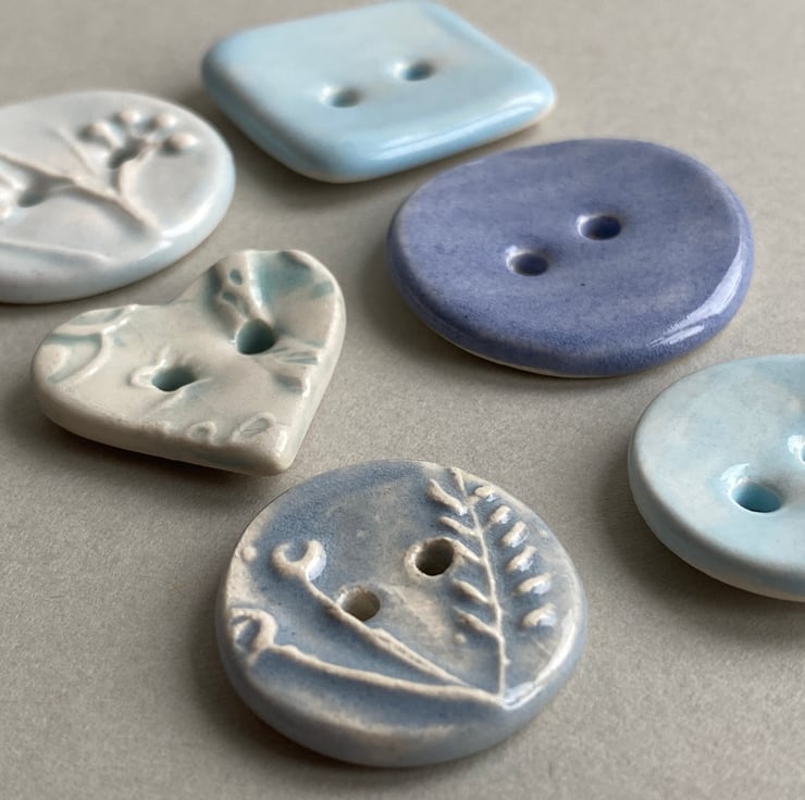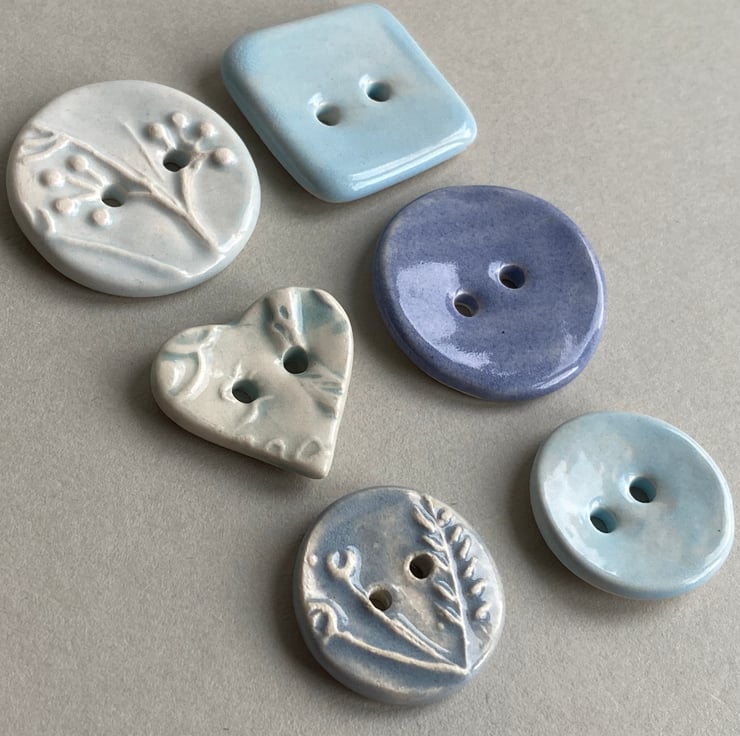 Set of Six Fabulous Handmade Ceramic Buttons mixed designs.