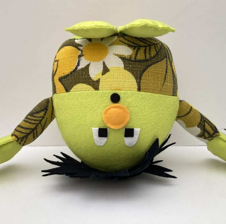 Chester is handmade by myself using original 1960’s barkcloth fabric and felt.