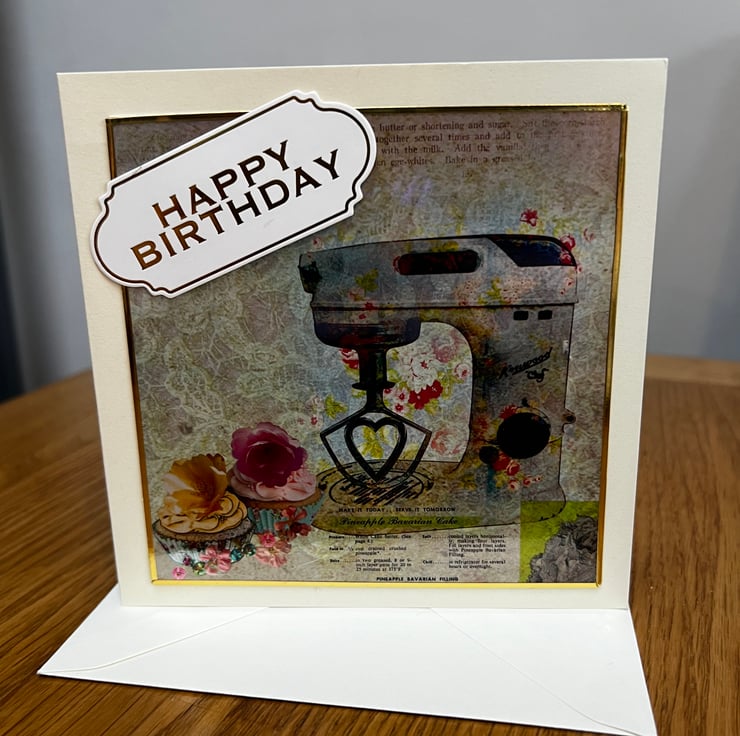 Perfect for any keen baker, Mixer design with lots of Shine and a 3D happy birthday wishes