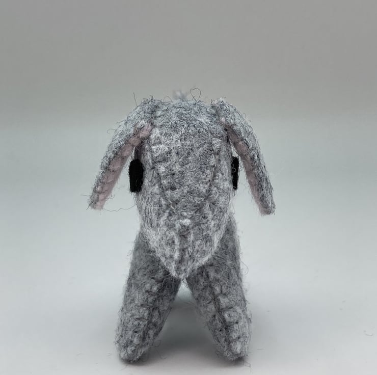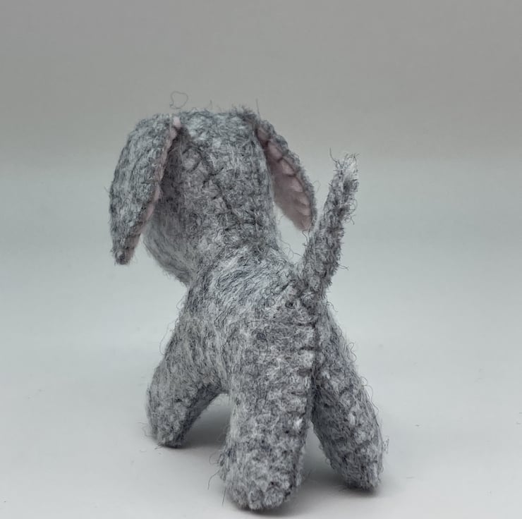 His eyes are made from black wool felt and the inside of his ears have baby pink wool felt.