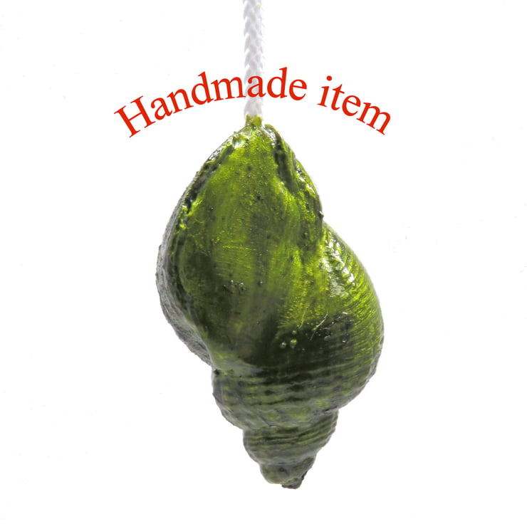 OOAK Nautical-themed light pull handle from whelk sea shell painted green-gold