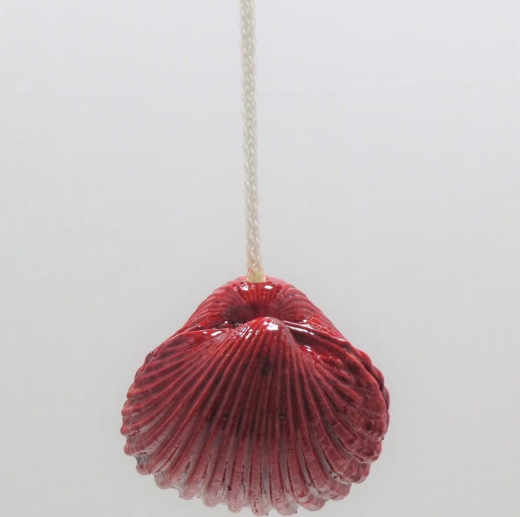 OOAK Nautical-themed light pull handle from beach found shell painted cherry red