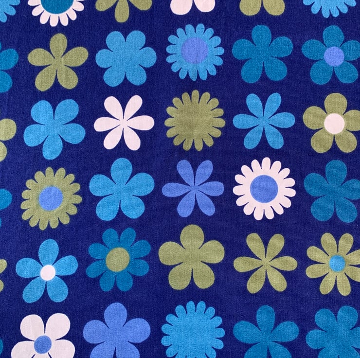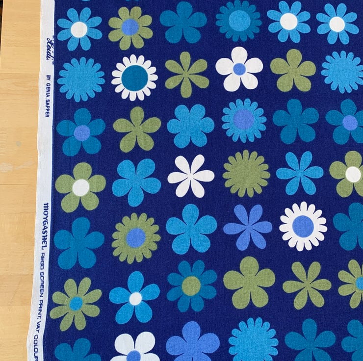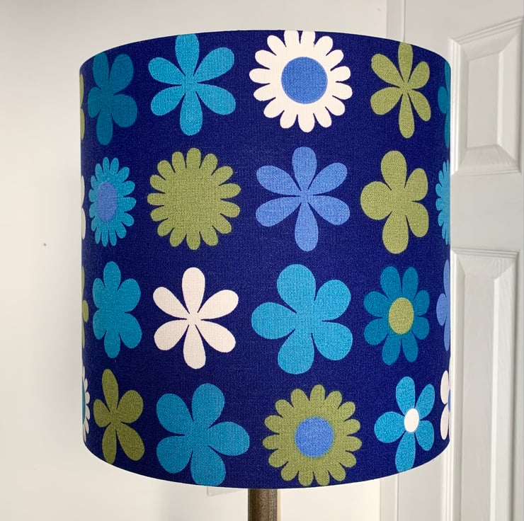 Retro Flower Blue Green HEIDI Genia Sapper 60s vintage fabric Lampshade option - A rare Moygashel fabric for a bold feature in either a modern or retro setting.