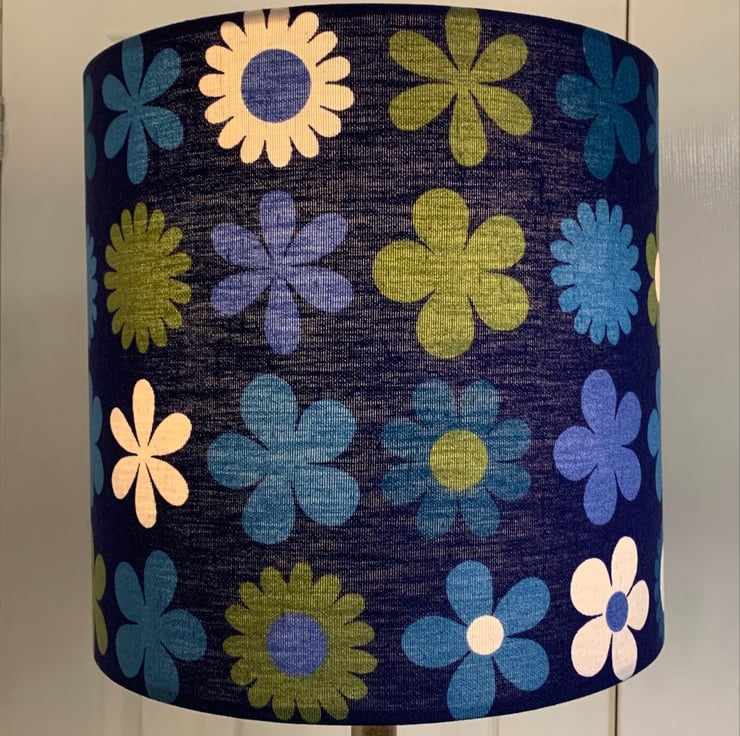 Retro Flower Blue Green HEIDI Genia Sapper 60s vintage fabric Lampshade option - A rare Moygashel fabric for a bold feature in either a modern or retro setting.