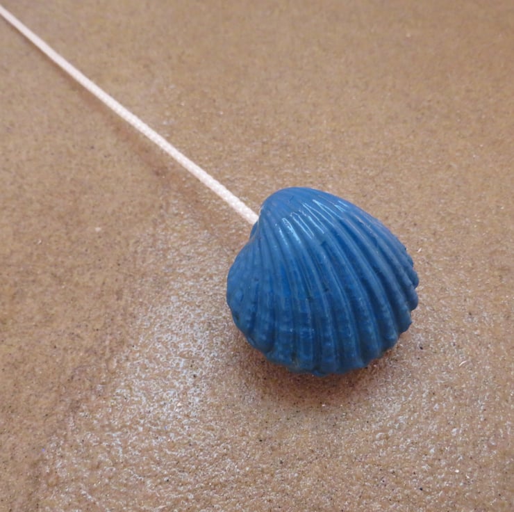 OOAK Nautical-theme light pull handle made of beach found shell in cerulean blue
