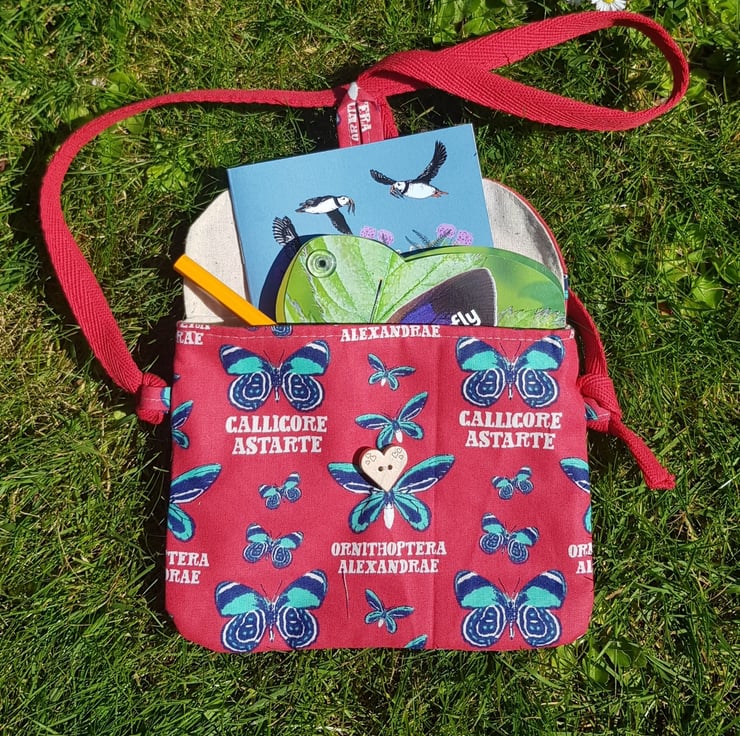 I have made these charming little crossbody bags large enough to contain a butterfly swatch from the Woodland Trust, a small note book and a pencil, making a great gift for a child of primary school age or early years secondary school. Such a great age to learn about nature and conservation. Ideal to take out on a nature walk for little and not so little people, to identify butterflies and to learn more about their preferred habitats.