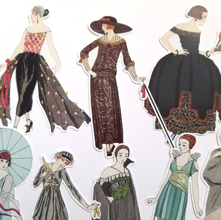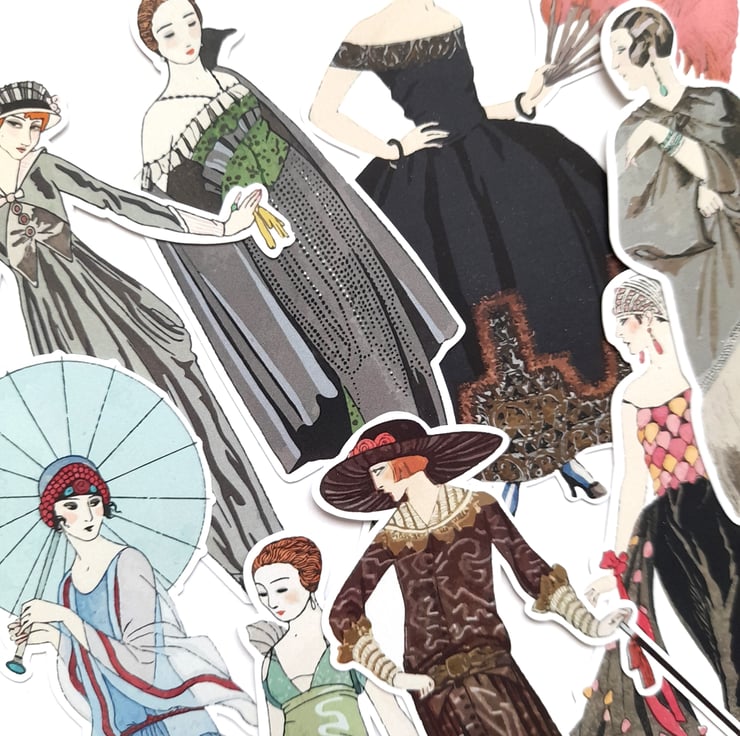 One set of handmade vintage, art nouveau fashion model die cuts / embellishments made from 250gsm silk card. Wonderful for card making, scrap booking, junk journaling, etc. There are 8 pieces in this pack. Sizes vary slightly but to give an idea of size they are approx. 10cm tall.