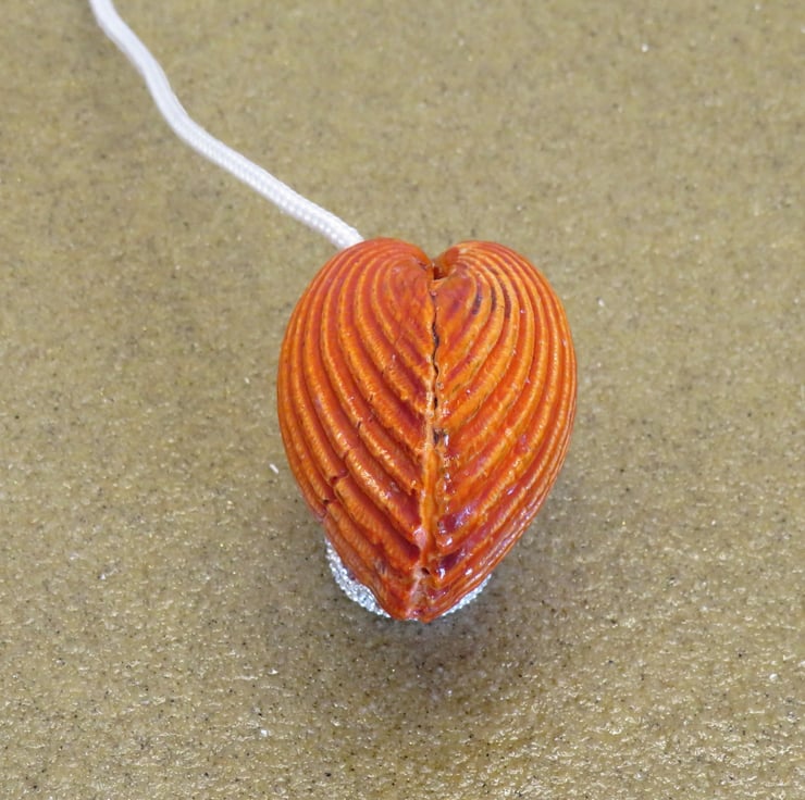 OOAK Nautical-themed light pull handle, beach found shell painted in terracotta.