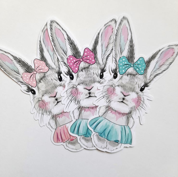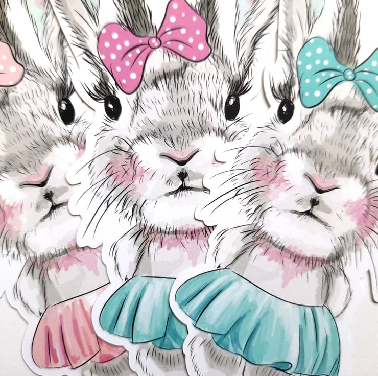 One pack of handmade die cuts / ephemera / embellishments with a sweet bunny ballerina theme printed onto 250gsm silk card. 3 large pieces, each with slight colour differences. To give an indication of size, they are approx. 13cm tall.