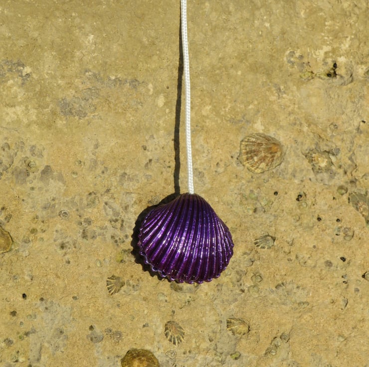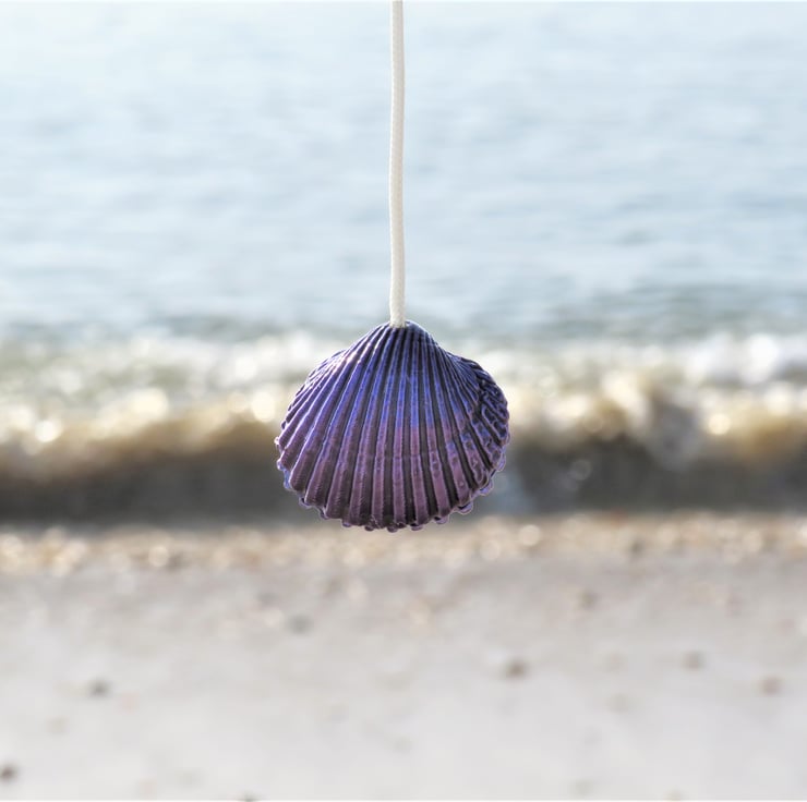 This particular shell has been painted with purple acrylic paint and a protective varnish to enhance the sheen, bringing the feel of the ocean to your room.