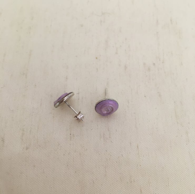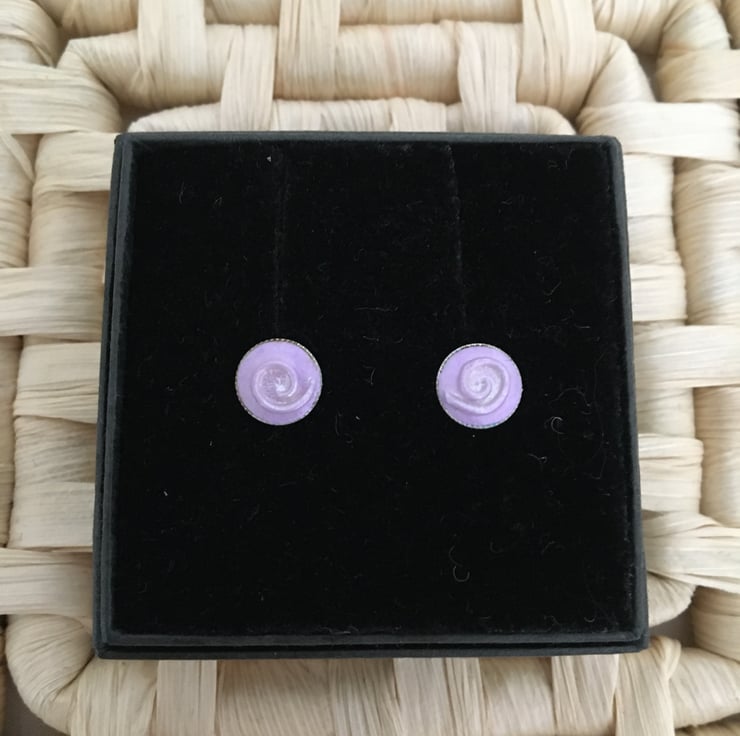These handmade studs are created using a polymer clay base in a silver tone setting . Once the clay centre is formed specialist powders are then added to enhance the colour tones before firing leaving a soft satin sheen