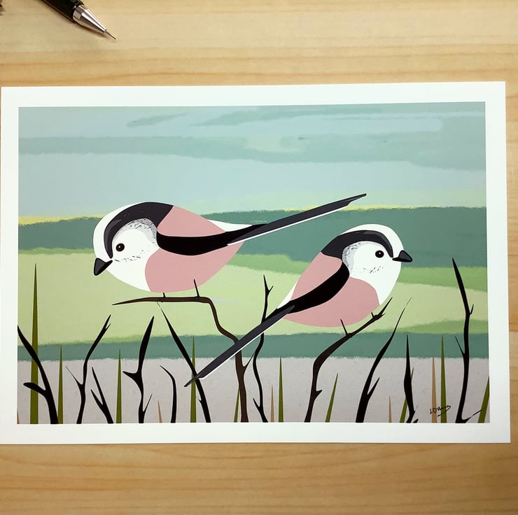 Long-tailed tits - high quality open edition print from my digital illustration of this popular garden bird.