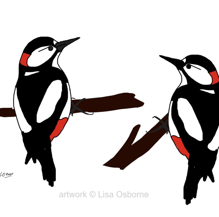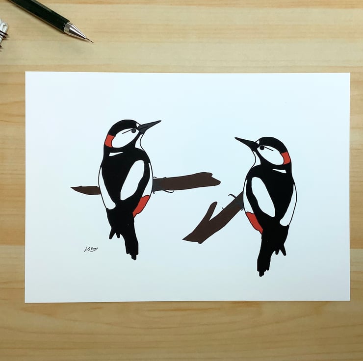 Woodpeckers - high quality open edition print from one of my digital illustrations of woodpeckers.