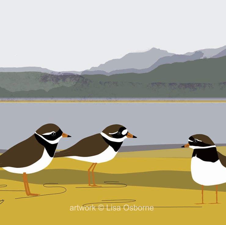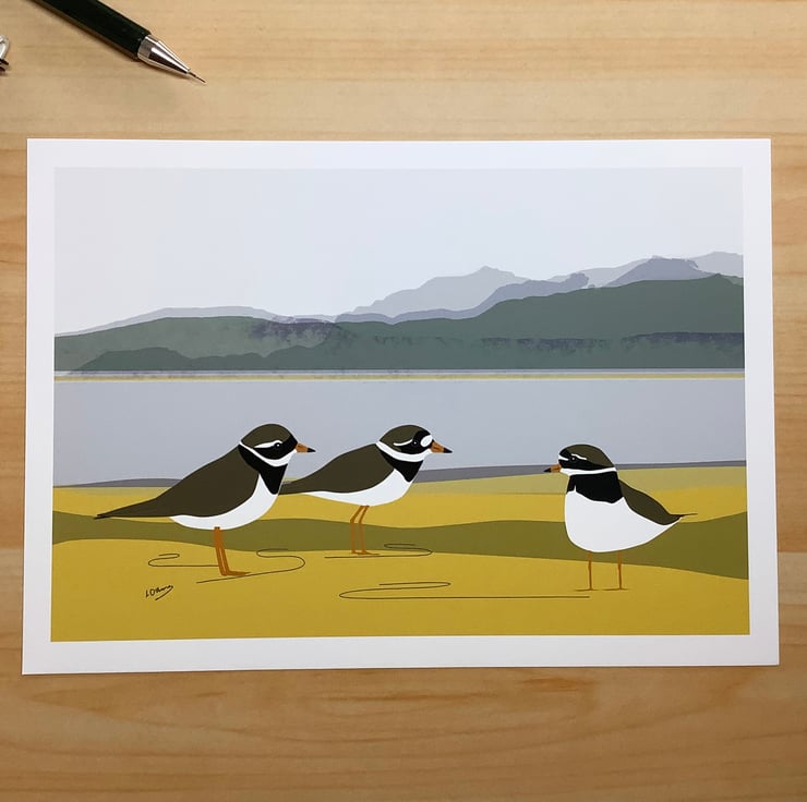 Ringed plovers - high quality open edition print from my digital illustration of this coastal bird.