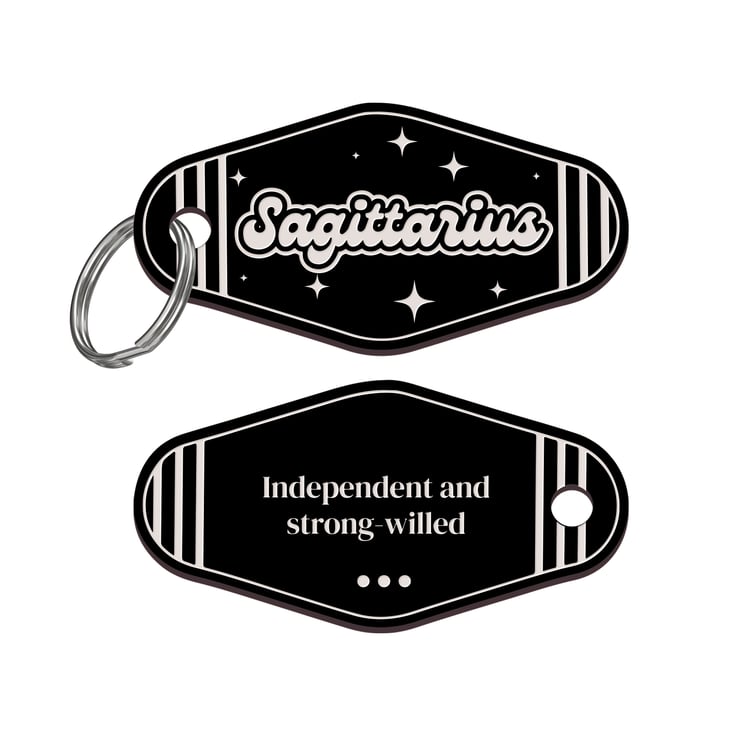 Retro Star Sign - Sagittarius Keyring: Motel-Style Zodiac Keychain Birthday Gift