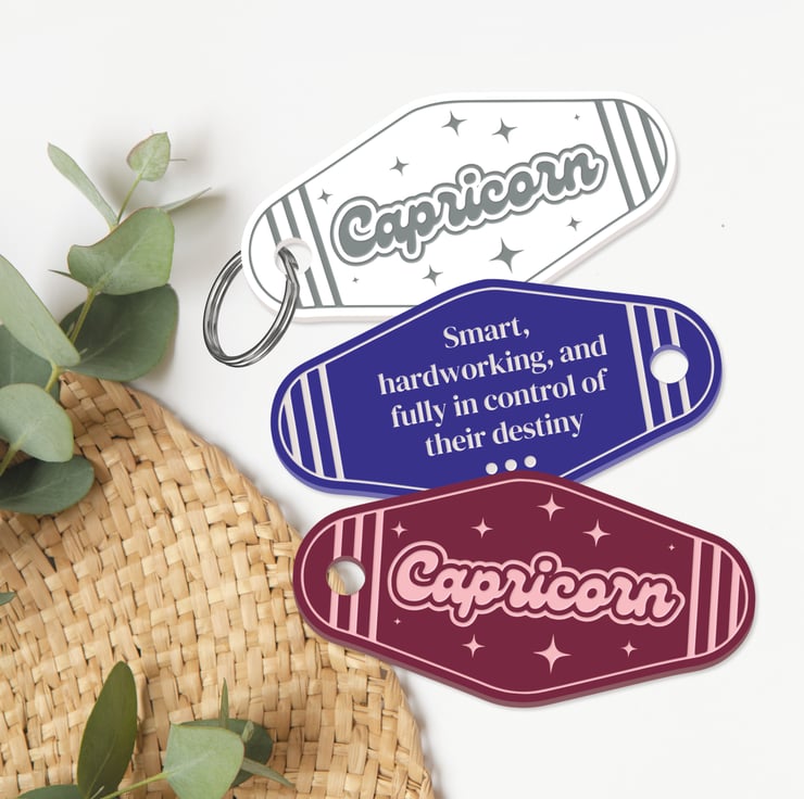 Retro Star Sign - Capricorn Keyring: Motel-Style Zodiac Keychain Birthday Gift