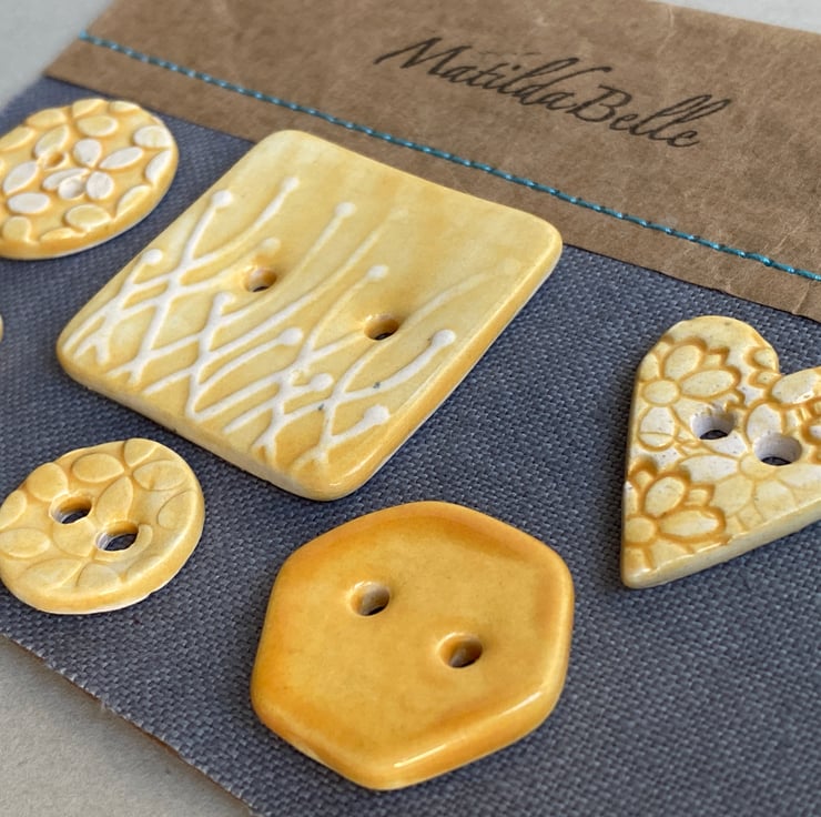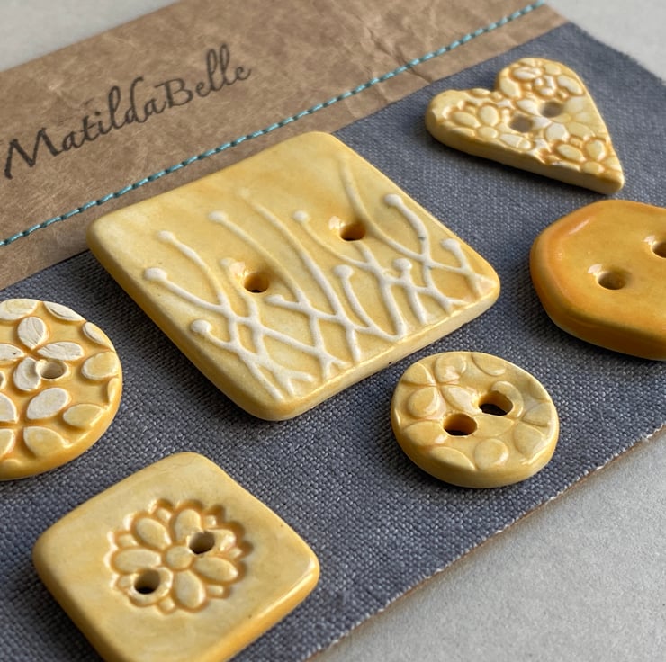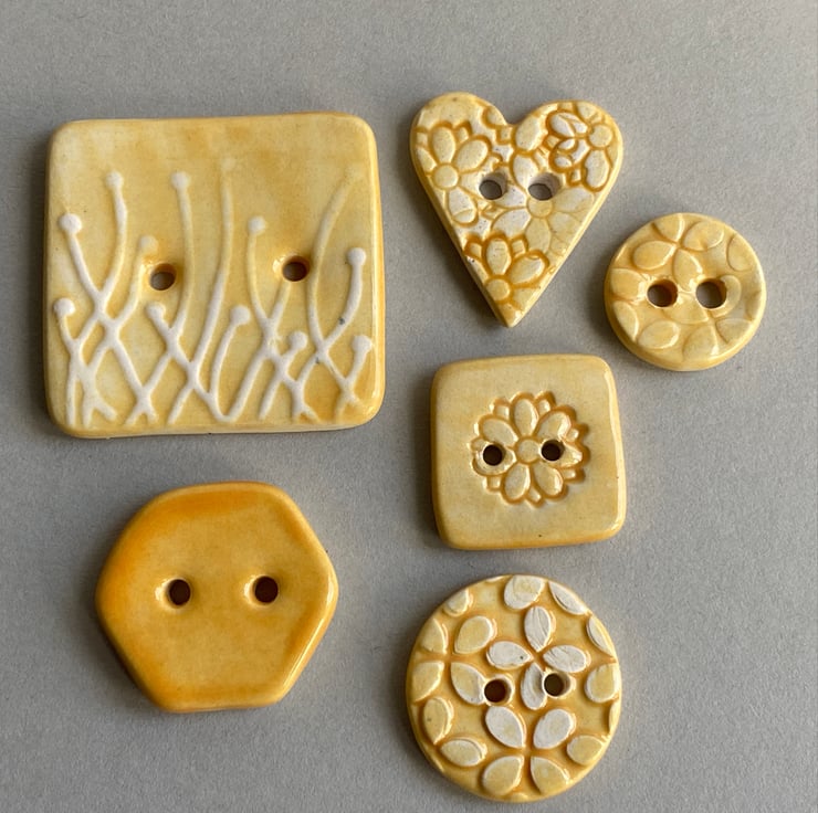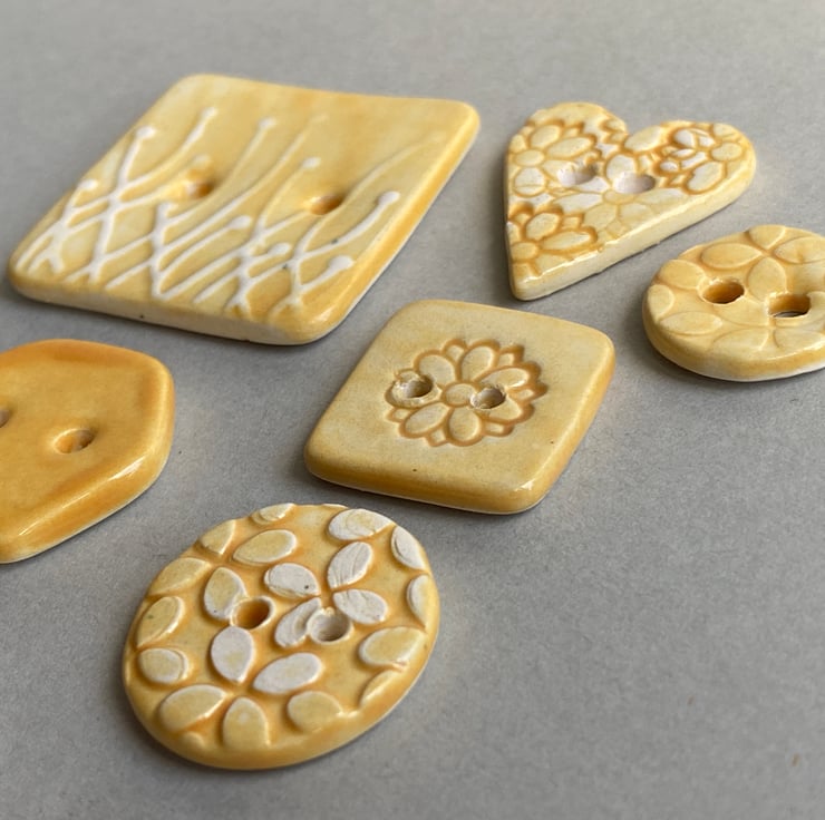 Buttons handmade Mixed set of Six ceramic Yellow glazed buttons