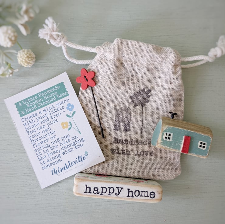 A teeny wooden house scene that you can choose to personalise with your own decoration!