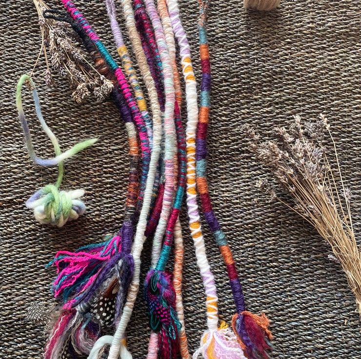 These colourful handmade dreadlocks are single ended, they have a small loop at the top where you can thread your hair through to plait braid in hair.