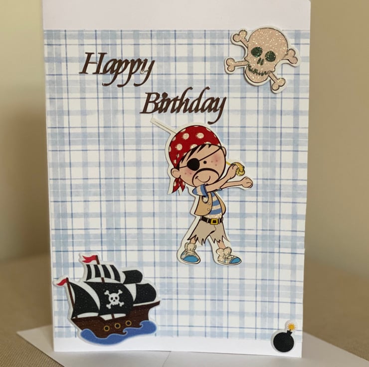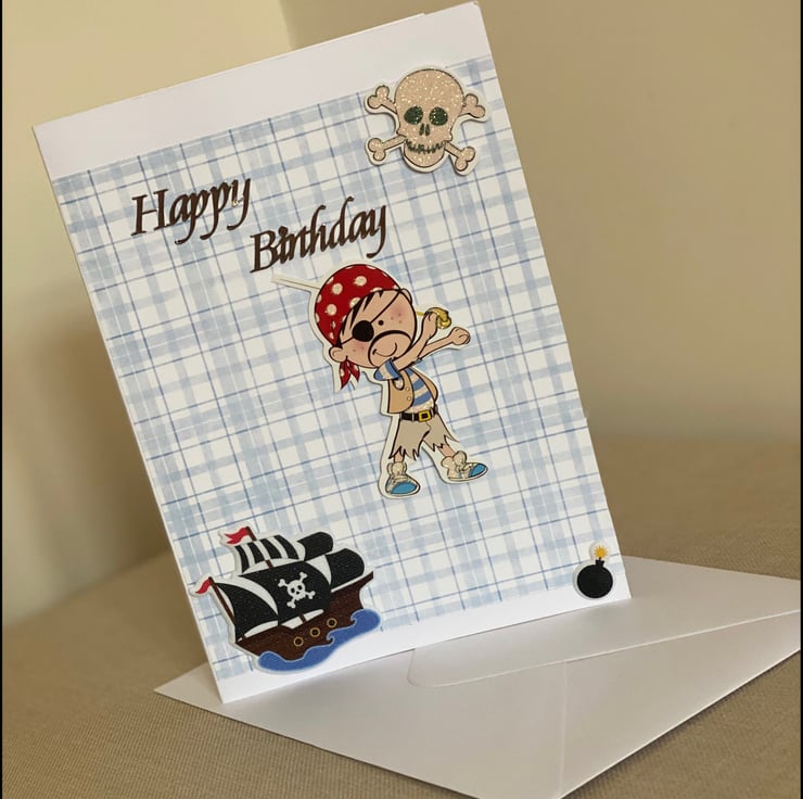 Blue and white theme card with Pirate 3D design,Flags and a whole lot of ARGHHH...
