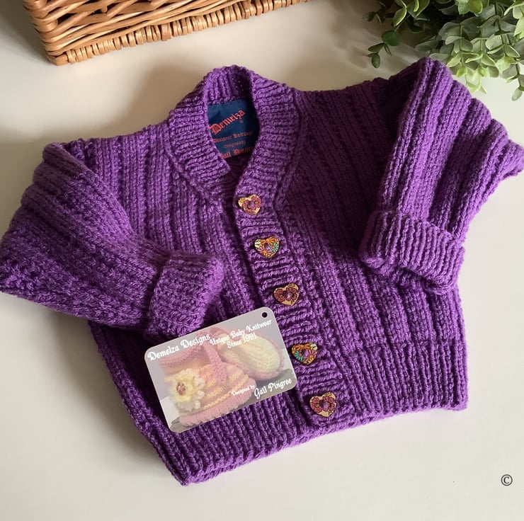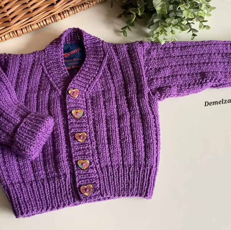 This cosy warm hand knitted baby cardigan has been lovingly designed and hand crafted in Cornwall using quality branded premium machine washable acylic yarns. The colour is very trendy to go with any baby girl's wardrobe collection. Most little girls love pink or purple!