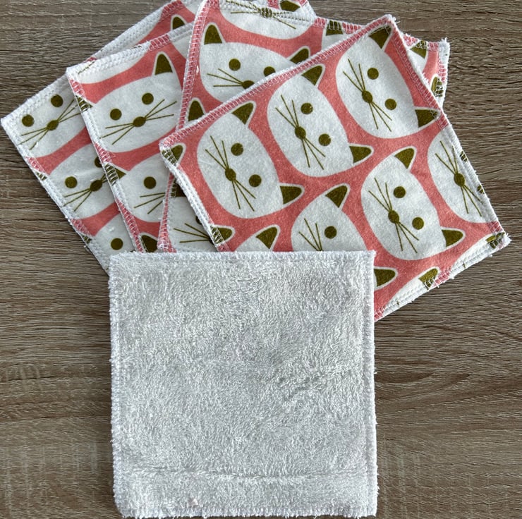 The cat fabric is off cuts from my sewing room as I try to aspire to zero waste. I also have wipes using Miffy fabric and some with whales. Please state design when ordering.