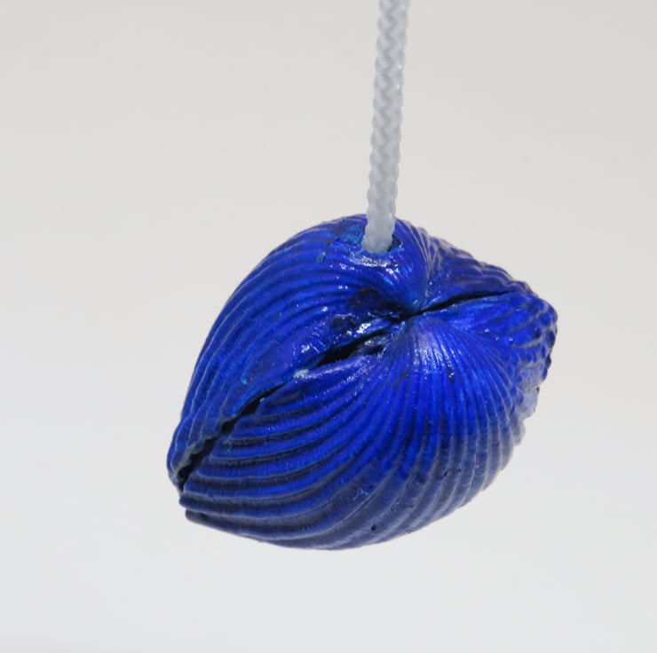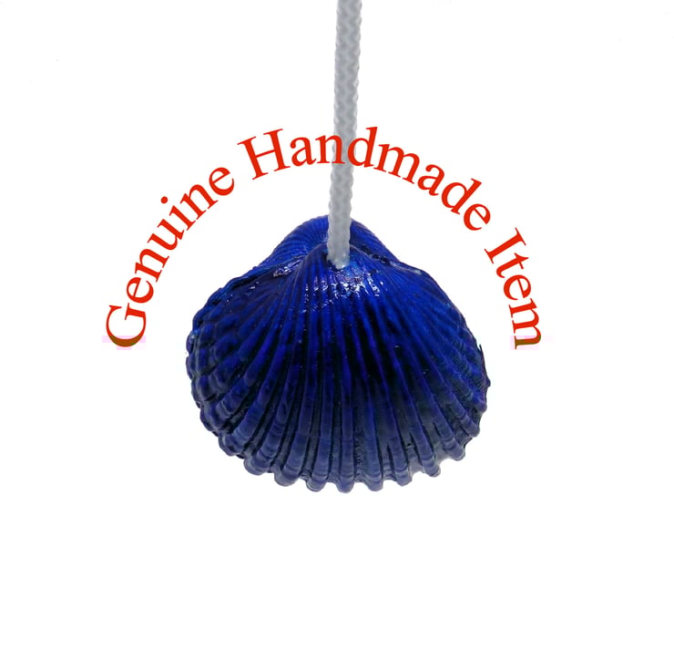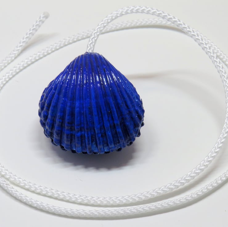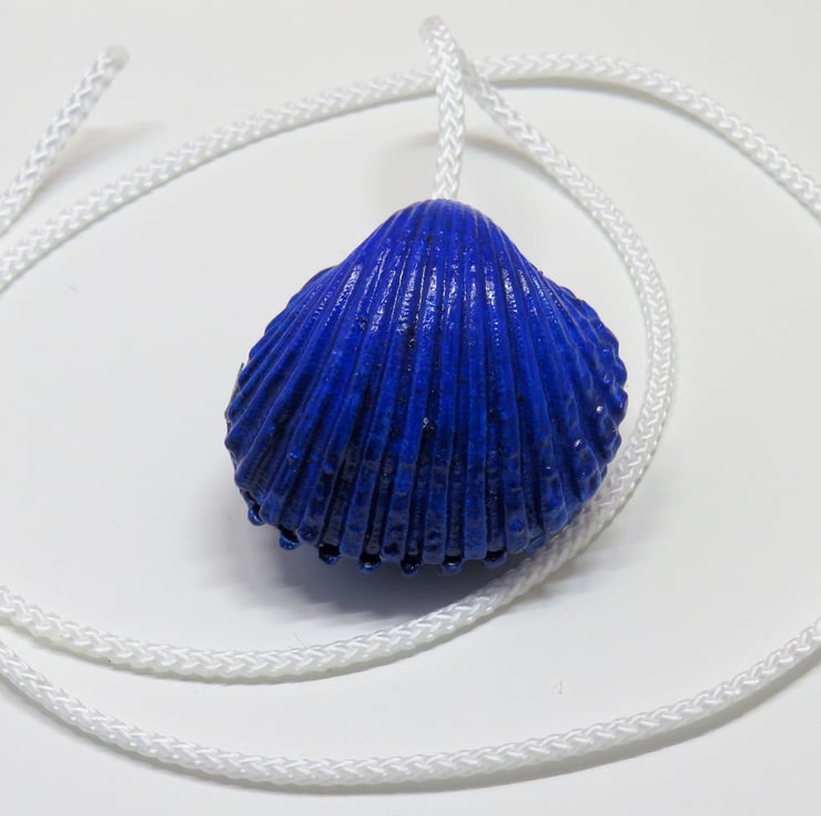 OOAK Nautical-themed light pull handle beach sea shell painted a rich deep blue.
