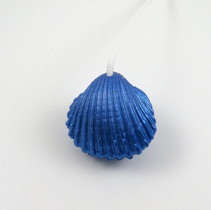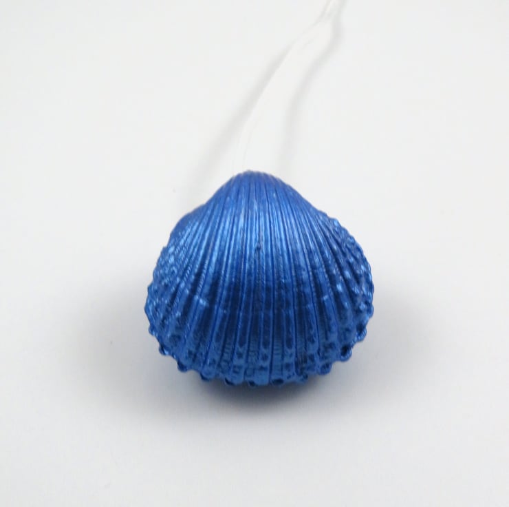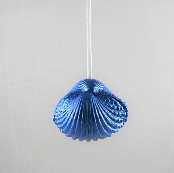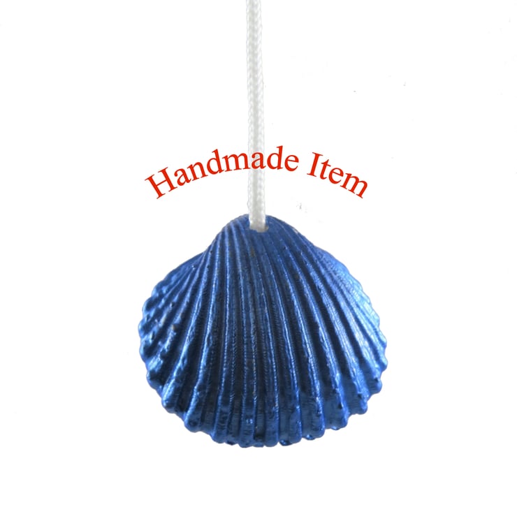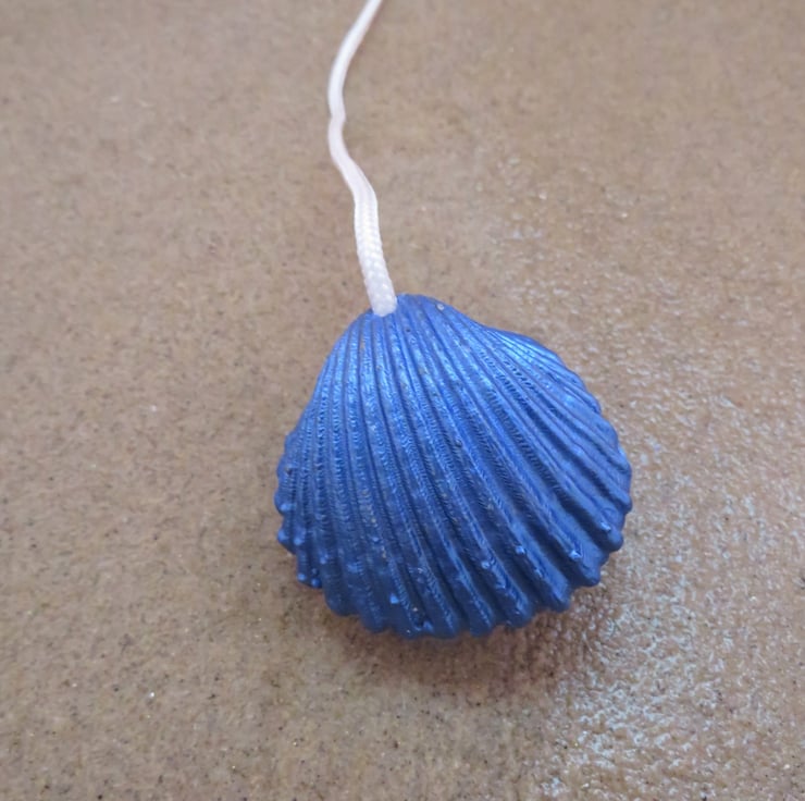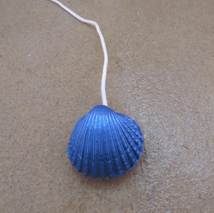 OOAK Nautical-theme light pull handle of beach found shell painted metallic blue