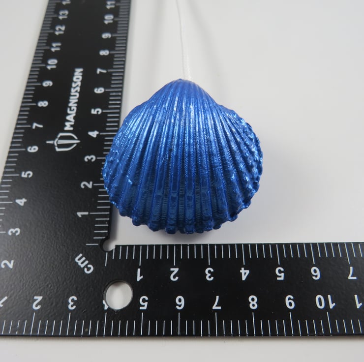 This particular shell has been painted with a metallic blue acrylic paint and three layers of protective varnish to enhance the sheen, bringing the feel of the ocean to your room and ensuring the steam will not break the shell down.