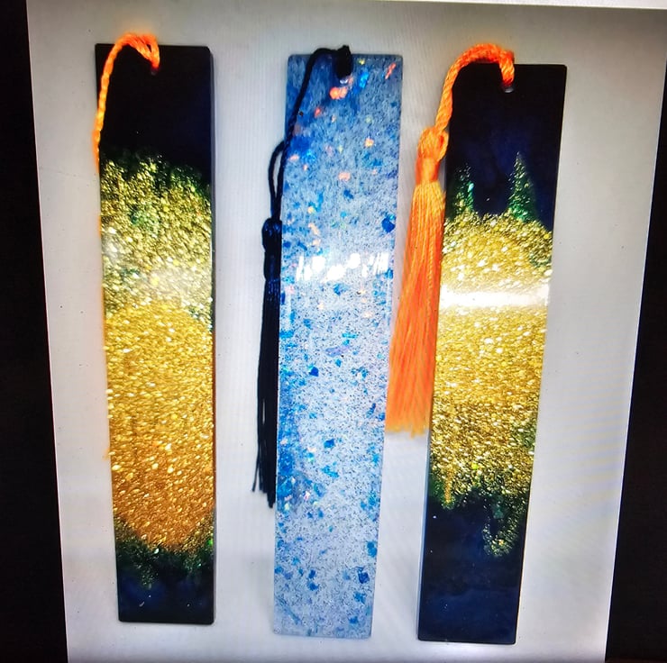 Book marks are the first item I made, they are my best sellers to this day. I have several in stock,but I'm happy to make a colour of your choice and style at no extra charge.
