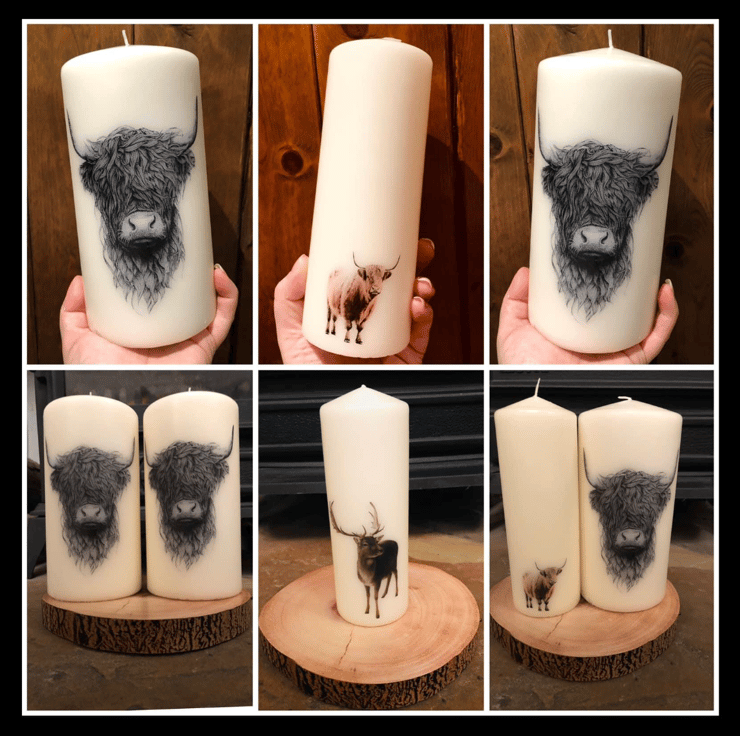 Here I am selling my gorgeous and very popular handmade Highland Cow pillar candles.