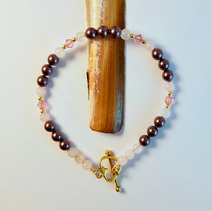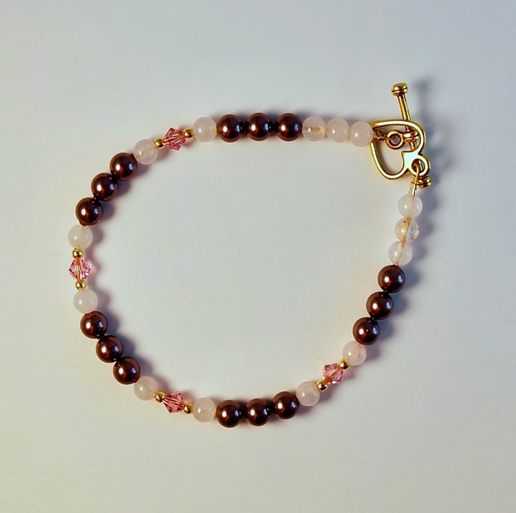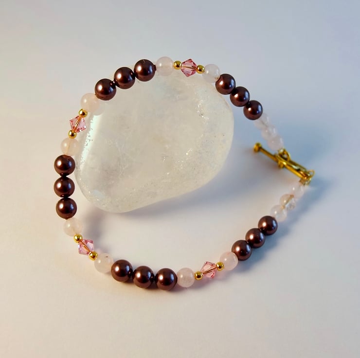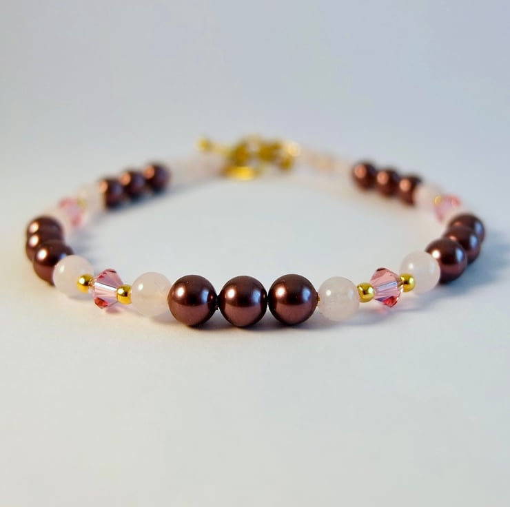 Dainty bracelet in pink and purple shades, with 5mm Austrian 'crystal Burgundy' glass pearls, 4mm Rose Quartz and 4mm sparkly Austrian 'light rose' crystal bicones.