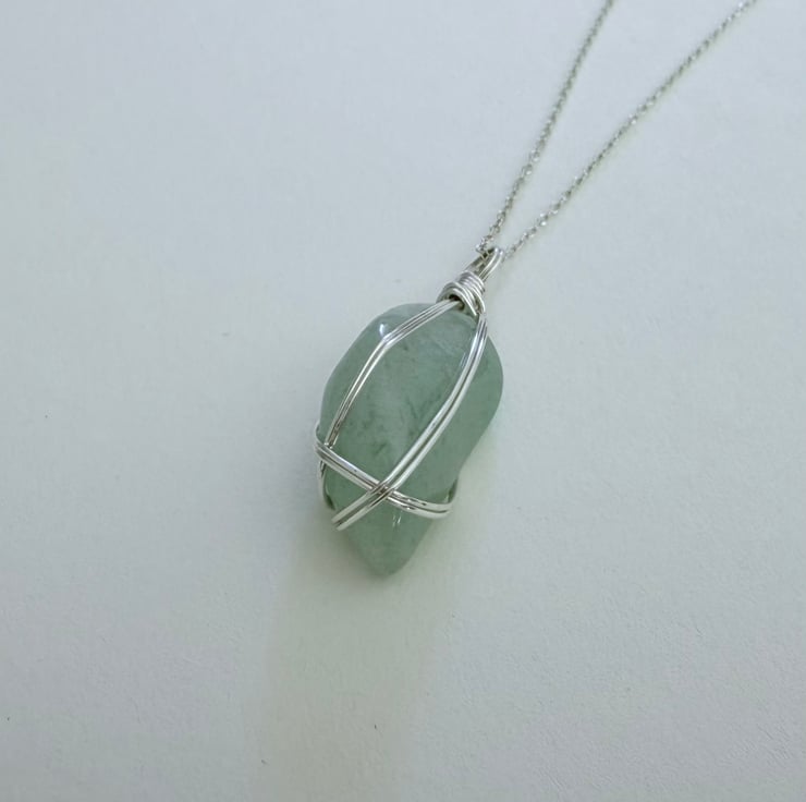 Stunning aventurine stone wrapped with silver plated wire and hung on a 925 silver chain.