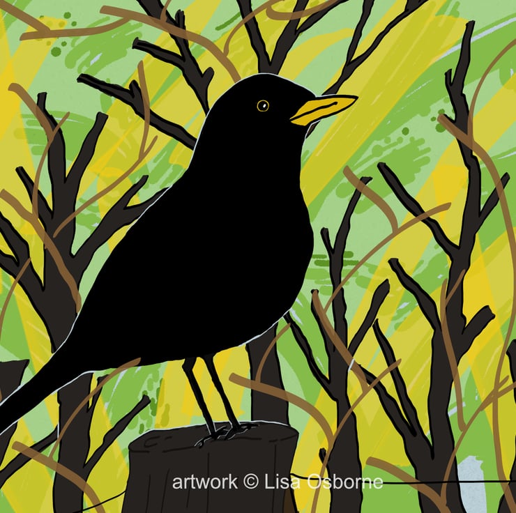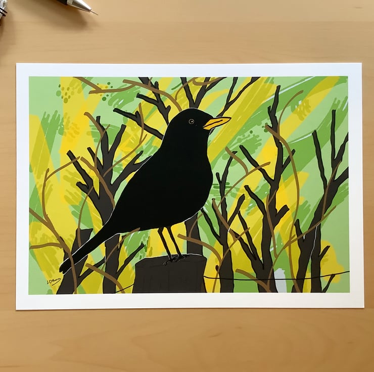 Blackbird - high quality open edition print from my digital illustration of a blackbird singing.